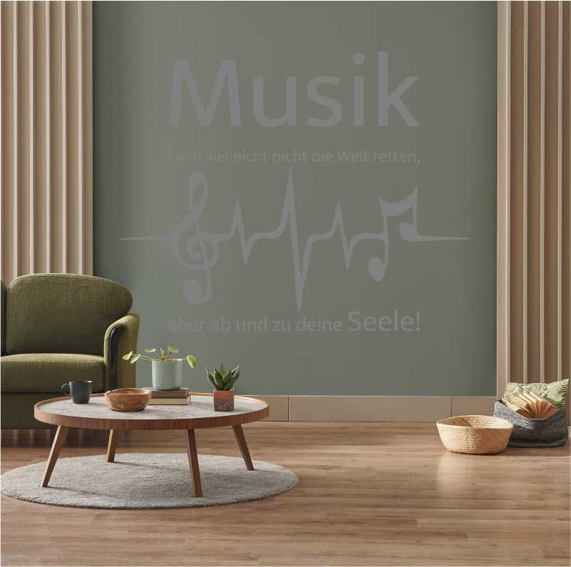 Wer oder was könnte uns leichter und besser in die Gefühlswelt abtauchen lassen, als die Musik. Für jede Stimmung, für jedes Feeling gibt es einen Song und eine Musikrichtung. Solltest du das einmal vergessen, weil dich die Alltagssorgen auffressen, hilft dir dieses Wandtattoo, dich daran zu erinnern. In 7 schönen Farben und 3 verschiedenen Größen erhältlich, wird es mit Sicherheit an einer Deiner Wände total gut zur Geltung kommen!